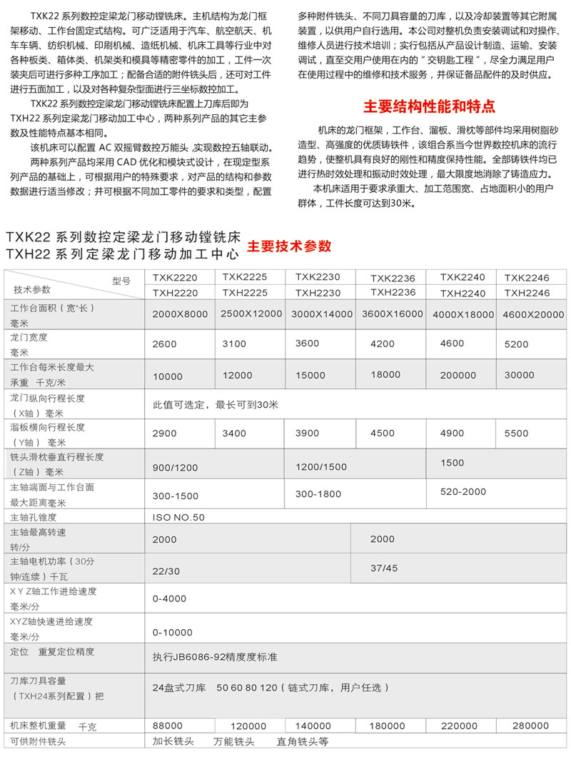 TXK22系列數(shù)控定梁龍門移動(dòng)鏜銑床